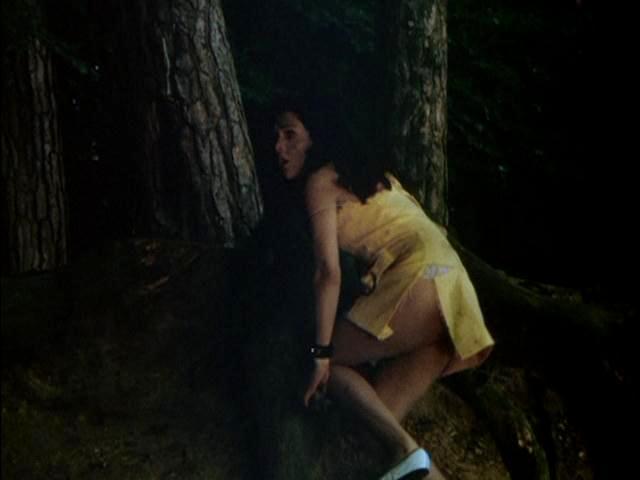 At 2:48 on the DVD, as the young woman, Leila Carlin, flees